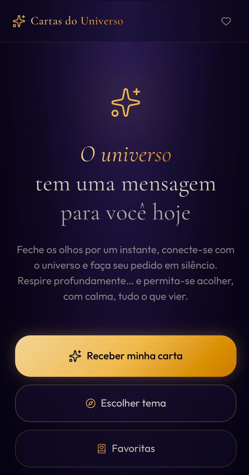 Em segundos, uma mensagem personalizada do universo aparece — feita para o que você precisa ouvir hoje.
